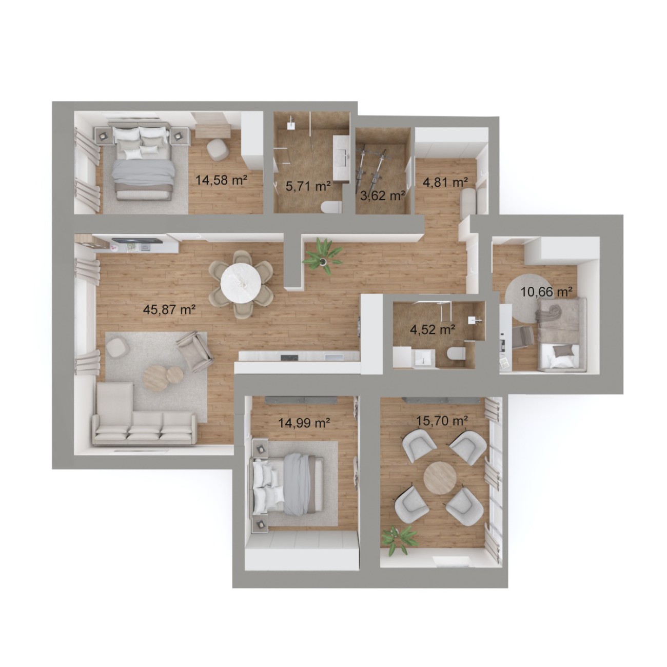 - Galimybė įsigyti automobilio parkavimo vietą aptvertoje, saugioje parkavimo aikštelėje šalia namo (papildomai 10 000 Eur.);